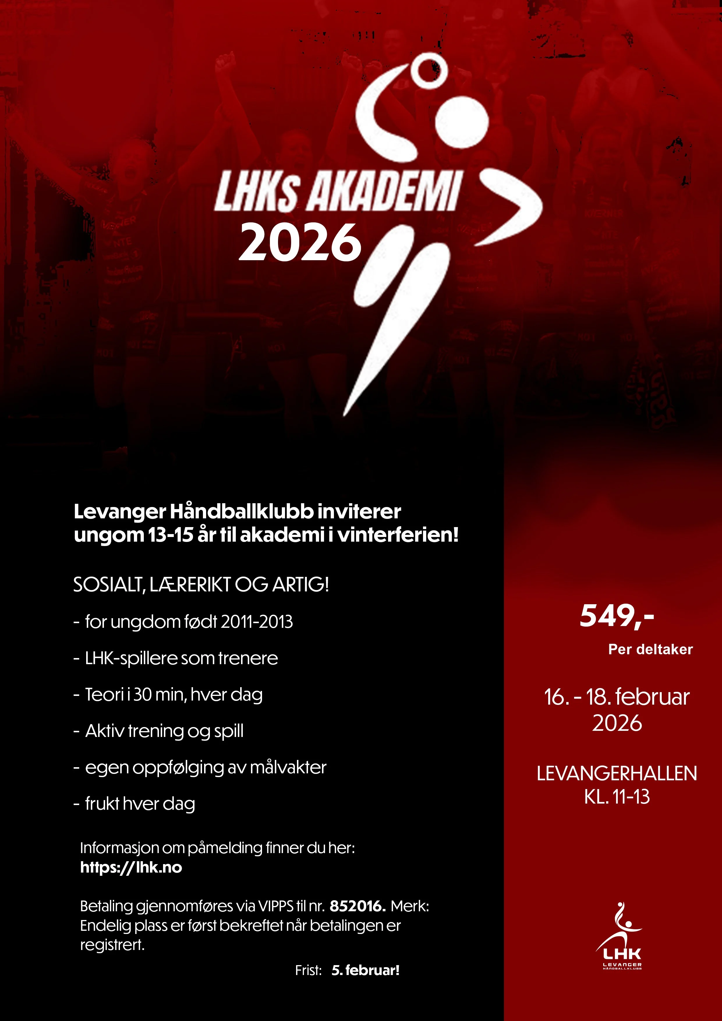 Levanger håndballklubb arrangerer håndballskole for barn og unge i vinterferien.